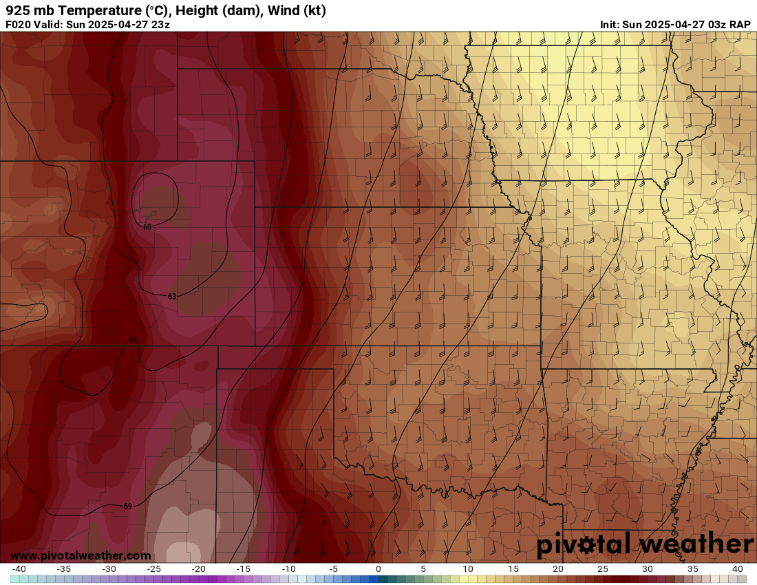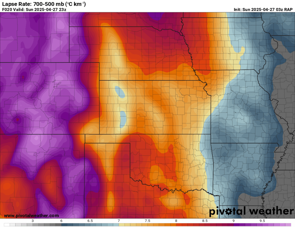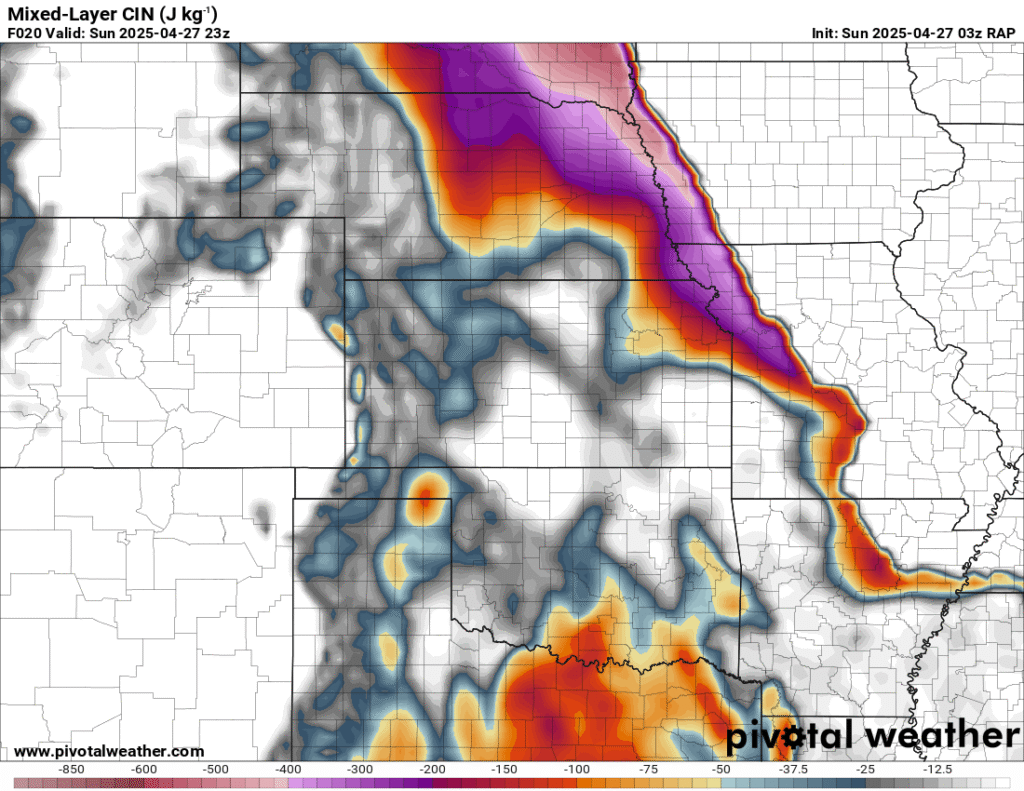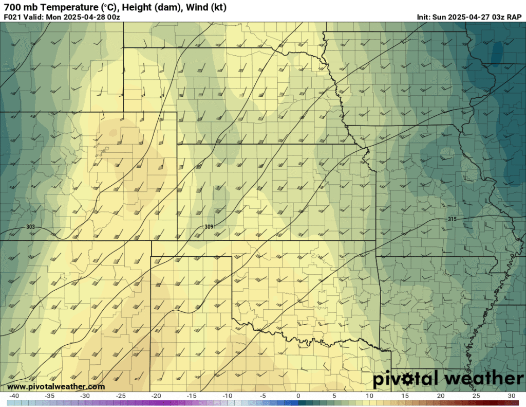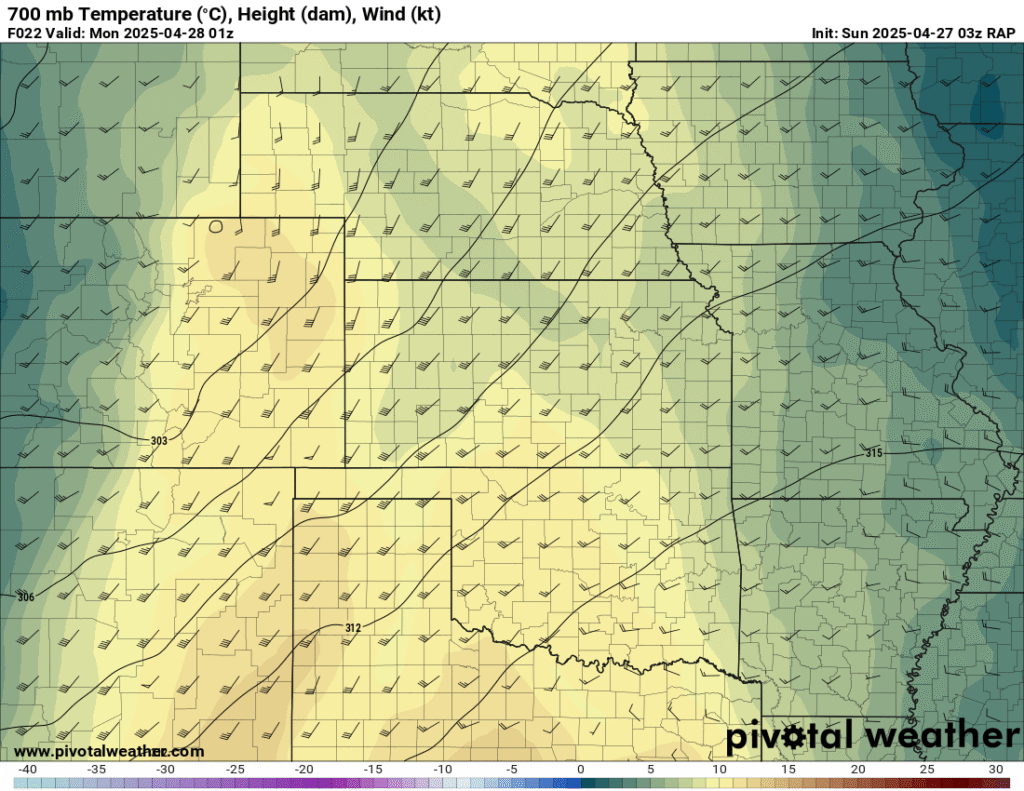 I was specifically impressed with temperatures at 700mb in the RAP runs, showing an area along the dryline in Western Kansas and Nebraska that would be sufficiently cool for convective initiation, or so I thought.