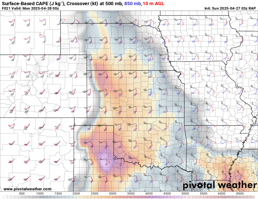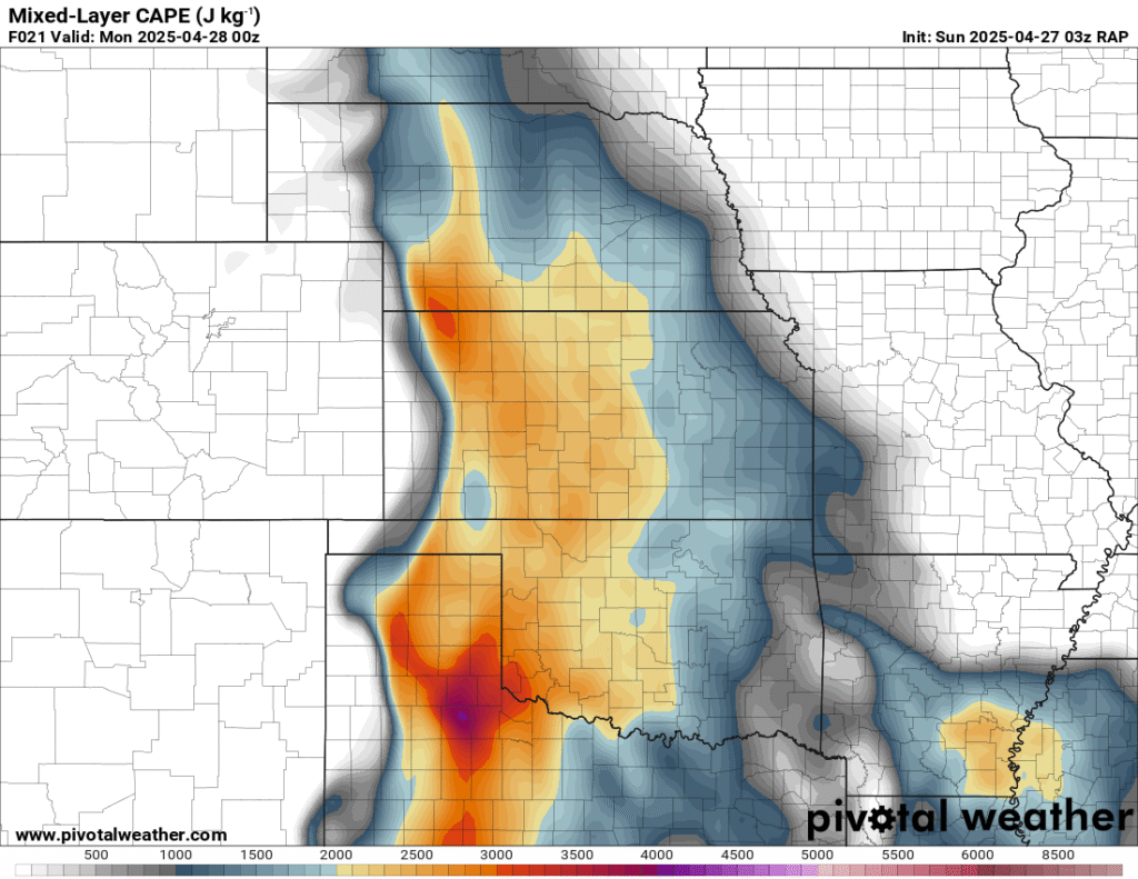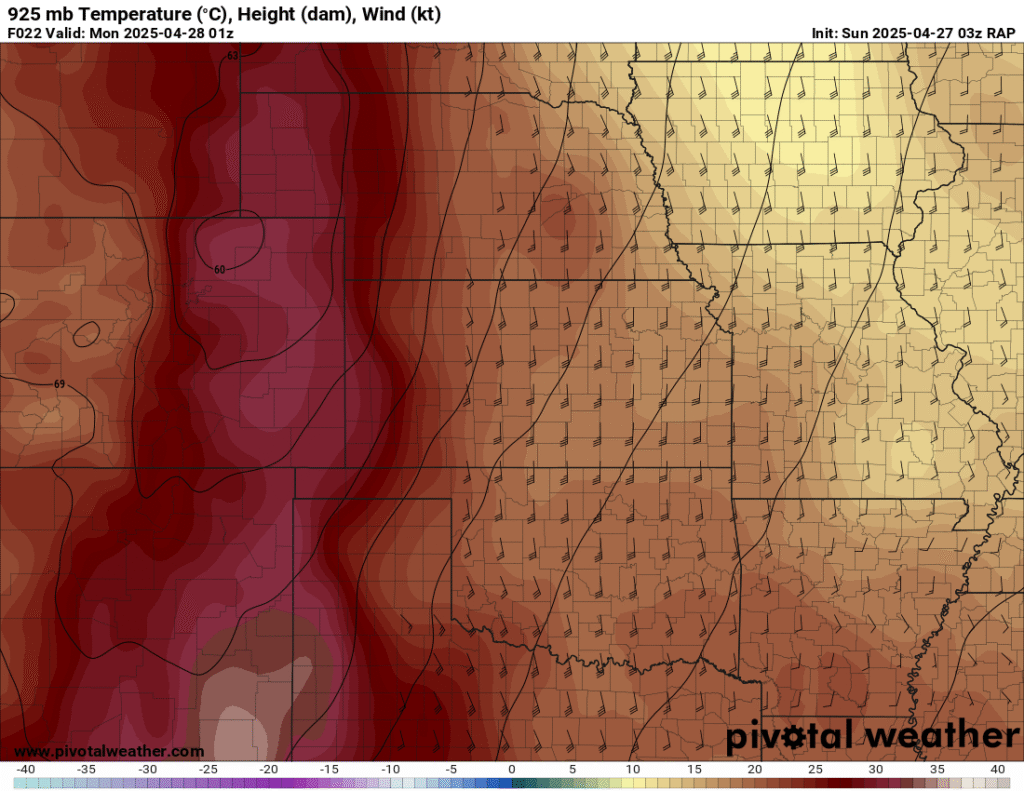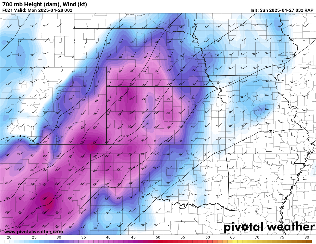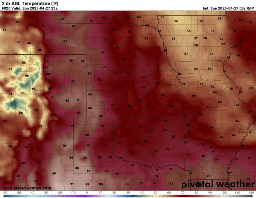 I was specifically impressed with temperatures at 700mb in the RAP runs, showing an area along the dryline in Western Kansas and Nebraska that would be sufficiently cool for convective initiation, or so I thought.