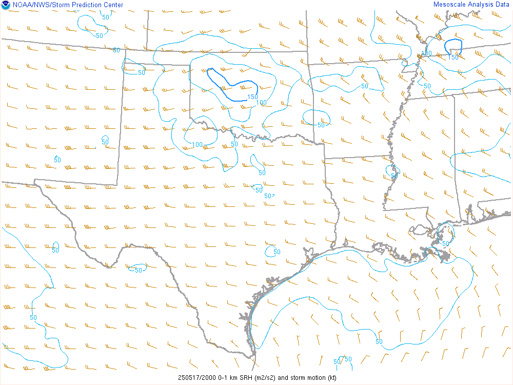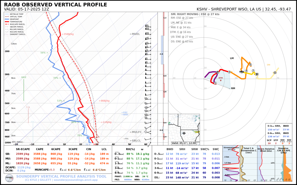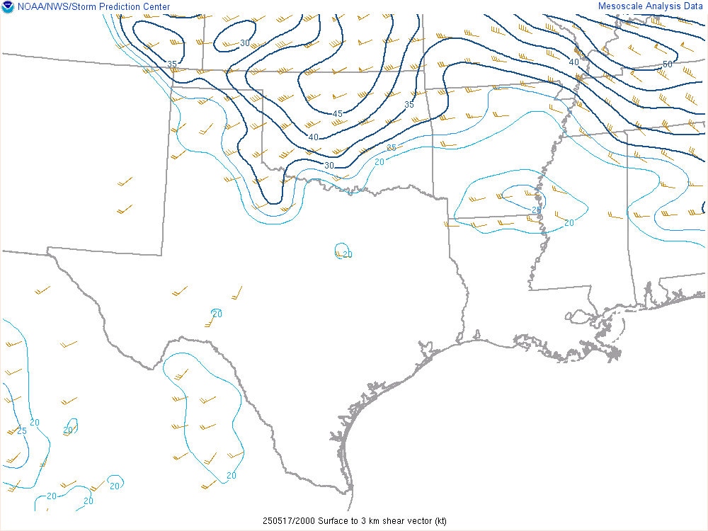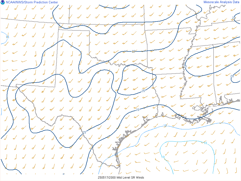 Shreveport morning sounding showed a very moist atmosphere with a PWAT value of over 2″. Norman was north of the boundary, which was very dry. A steady stream of westerlies in the upper levels would ensure decent venting.