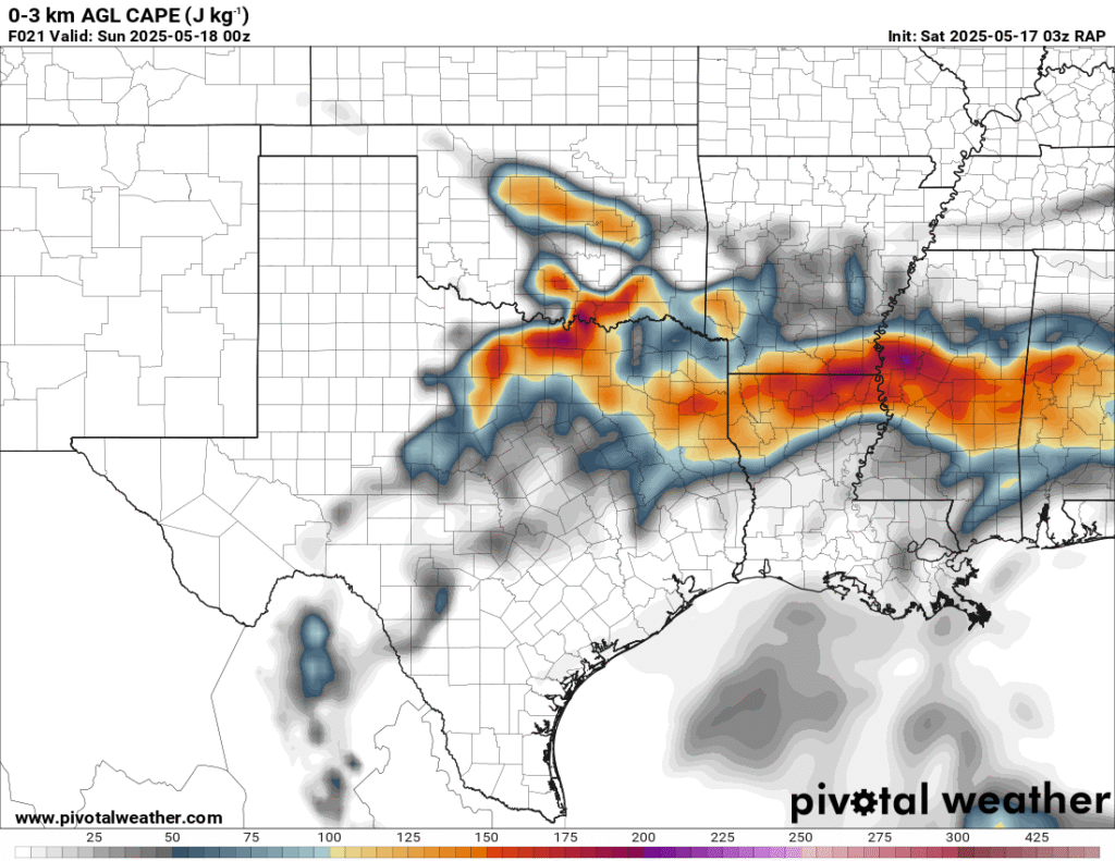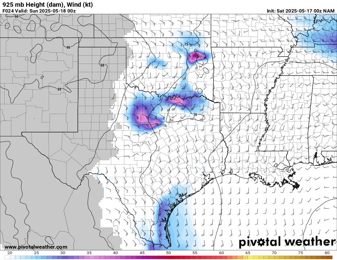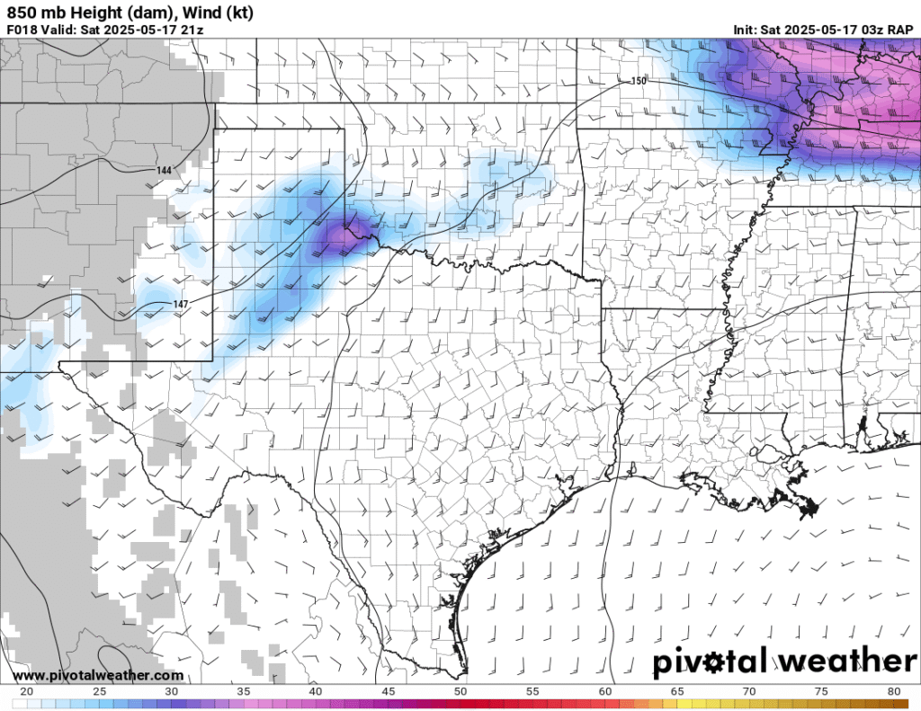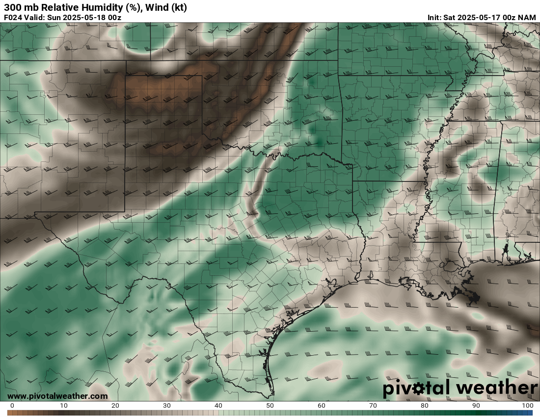 Shreveport morning sounding showed a very moist atmosphere with a PWAT value of over 2″. Norman was north of the boundary, which was very dry. A steady stream of westerlies in the upper levels would ensure decent venting.