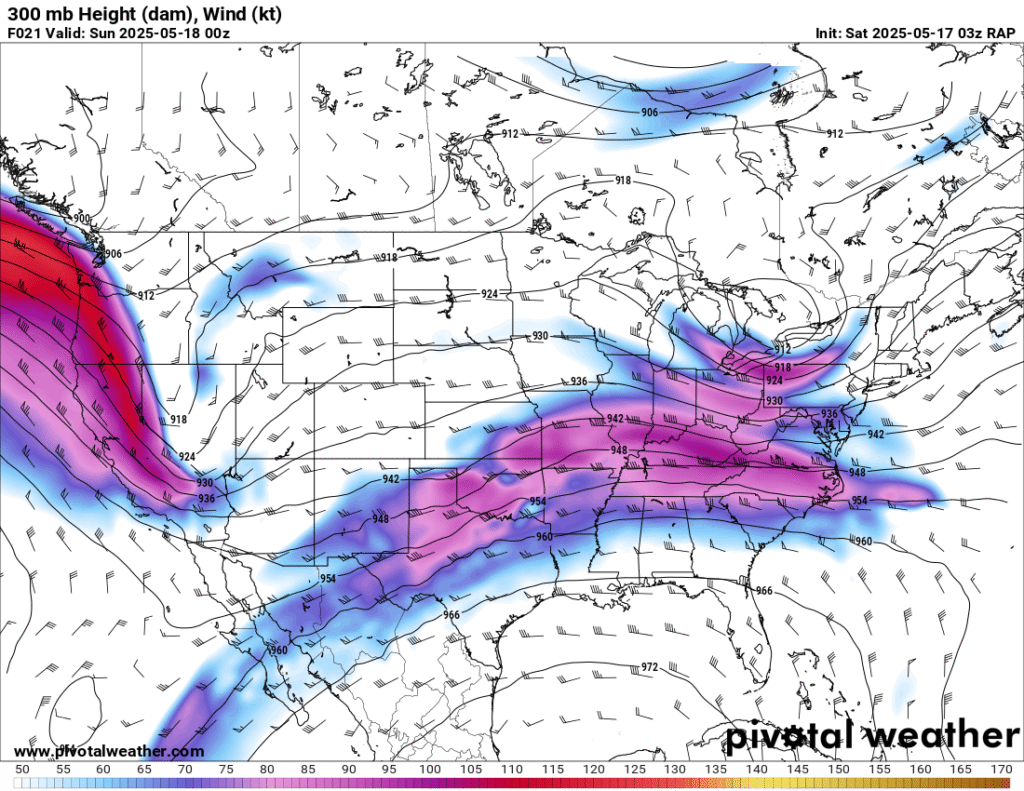 As mentioned, forecast models showed a very strong subtropical jet at 200mb over an extremely moist and unstable airmass. Multiple days in a row of this pattern which has classically produced some decent Oklahoma days.