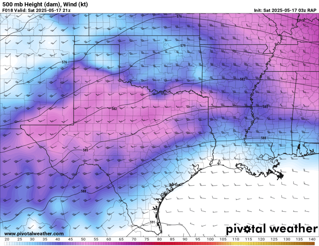 I opted to skip chasing the previous day, the 16th near Sikeston, MO, in lieu of multiple days in Oklahoma. The 17th appeared to be the first day of a multi-day severe weather episode across Oklahoma. Forecast models showed the upper jet stream in excess of 100 knots overspreading an area of extremely moist/unstable airmass across Central Oklahoma.