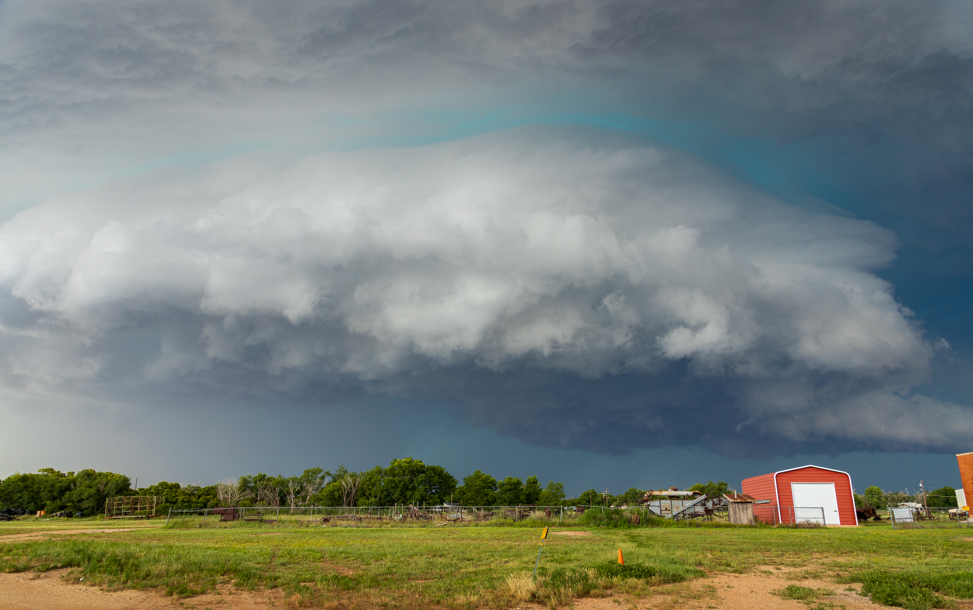 Every chaser ended up in a conga line on my favorite FM-656 east out of Turkey. The road has a number of turns on it, so we had a hard time staying ahead of the storm. Eventually enough people pulled over that we were able to put some dirt between us and the storm.