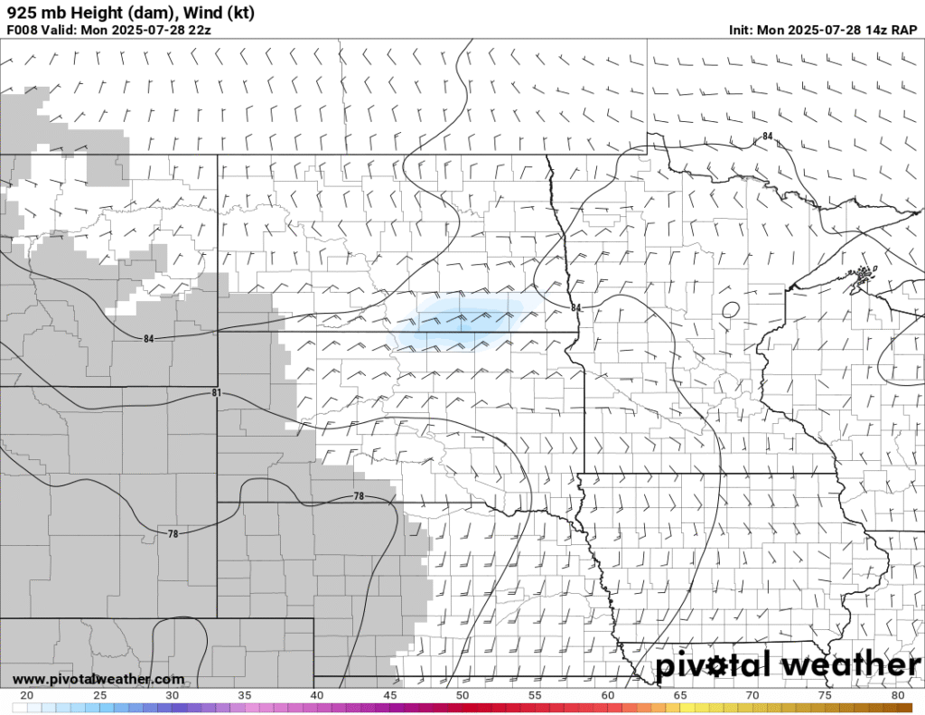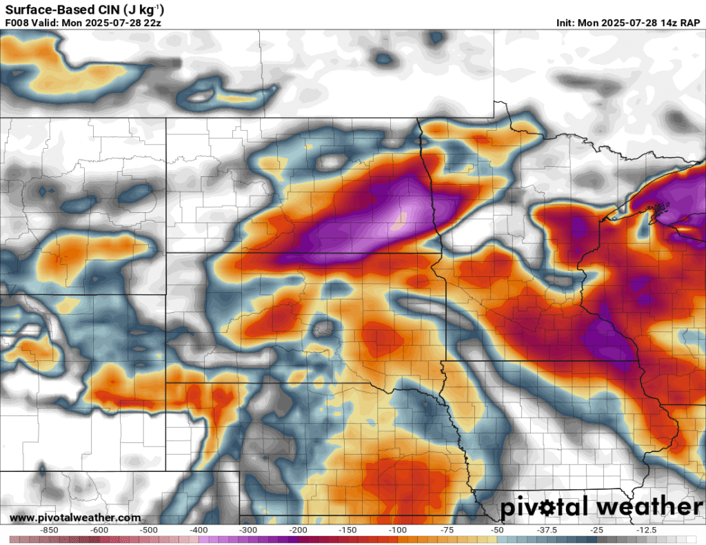 Between visiting the National Monument and work obligations, I became distracted. When I started moving west, the idea was to go to the Huron area or a little further west and/or north. Convective Initiation further southwest put me out of position big time. To compound the issue, I headed west out of Pipestone and continued through Madison and then tried to go through Salem. Road construction including a 15 minute wait for a pilot car and another long detour around Salem and back to I-90 cost me a lot of time.