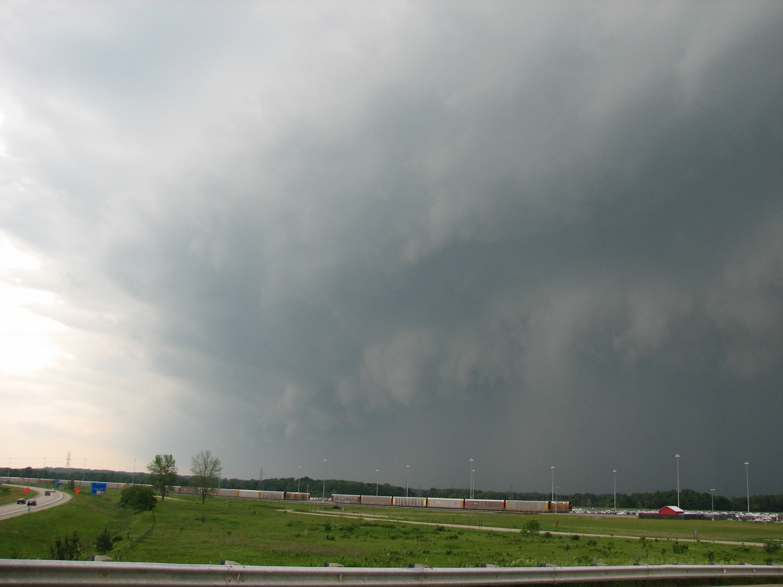 City of Lansing Emergency Manager Atkins asked me to go run by some areas on the north side and send back some live video prior to the new storms arriving for their damage assessment. I did that then headed out to Delta Township in West Lansing. I was going to set up on the Mt. Hope Highway bridge, but trees and narrowness of the bridge made me reconsider. I settled for the bridge over I-69 on Davis Highway near the new GM plant and setup my camera. I did a time lapse as the shelf cloud approached and took quite a few pictures.