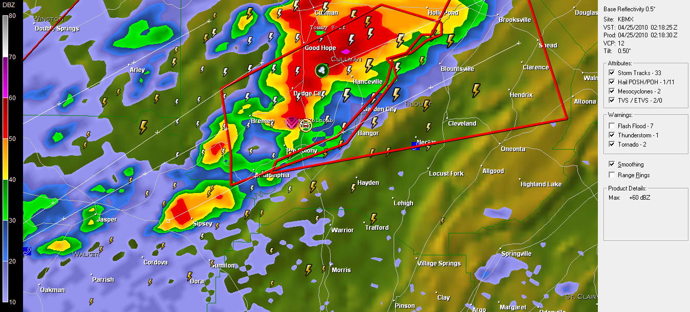 I headed towards Tuscaloosa and then to Birmingham and up I-65. Another tornado warned cell had popped to my west, so I got in a position to observe/intercept west of I-65. I ended up finding a good place to stop and stepped outside for a moment. Once I stepped inside, I felt this burning sensation on my leg. I looked down to find a leg full of fire ants, so I spent the next few minutes trying to clean them off and do a phoner with WLNS TV 6 in Lansing.