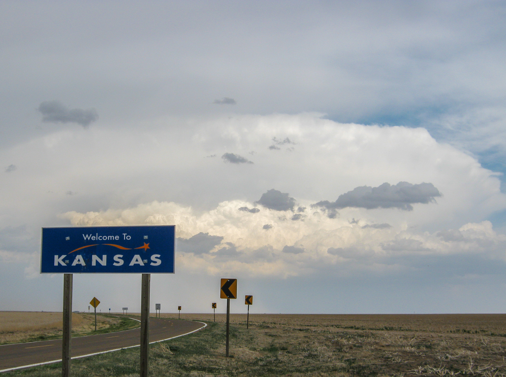 Somewhere east of Kim, we decided the storm was completely falling apart, and decided to bail on them for the storms blowing up in the Texas and Oklahoma panhandles. It was quite a long shot, but the updrafts were visible from our position, and the storms were looking very healthy.