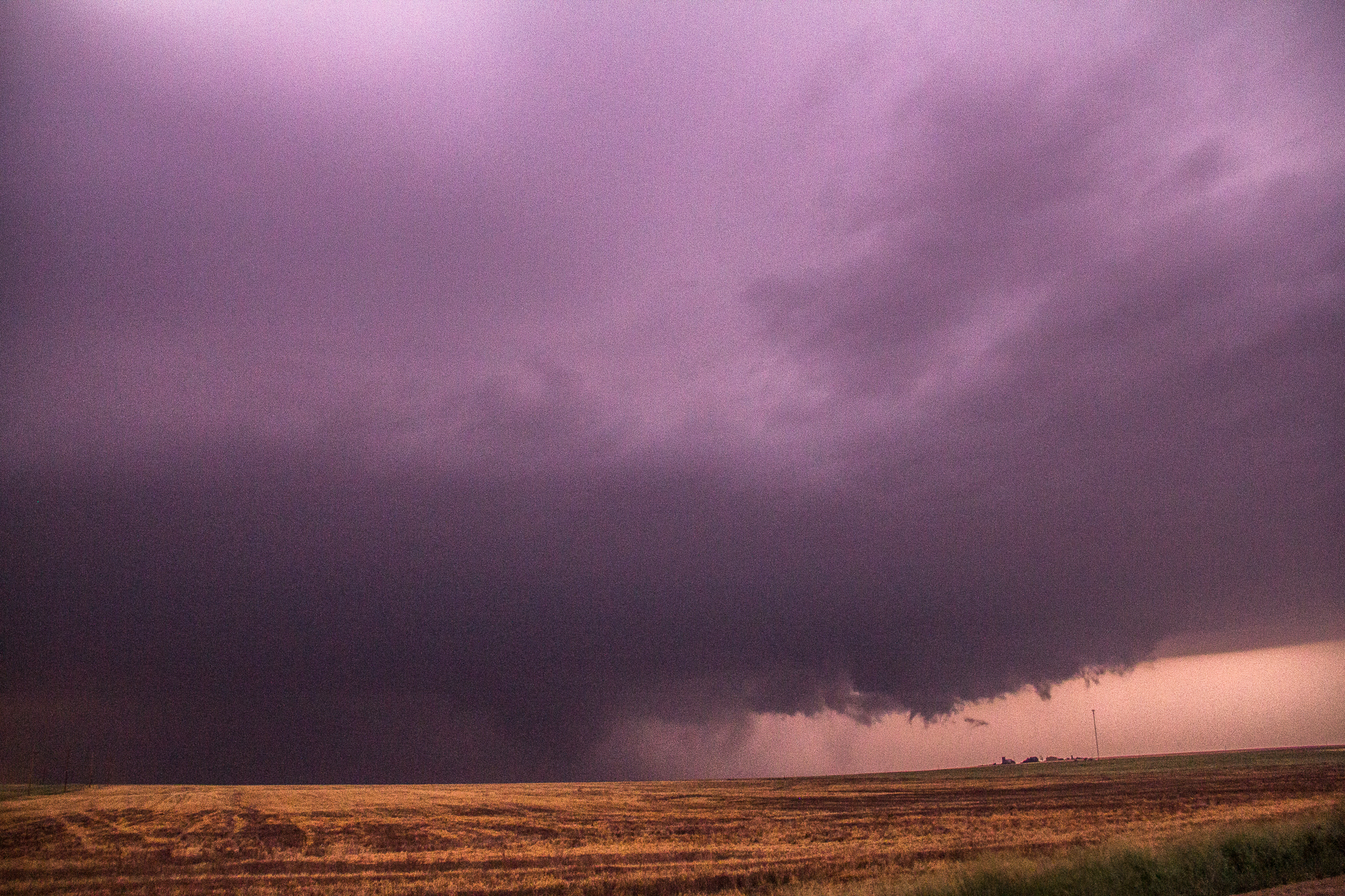 We sat just east of the town of Bunker Hill for quite awhile and eventually made hotel reservations in Dodge City and captured the sunset. It was about sunset when other chasers started reporting a tornado south of Russell so we decided to head that way.