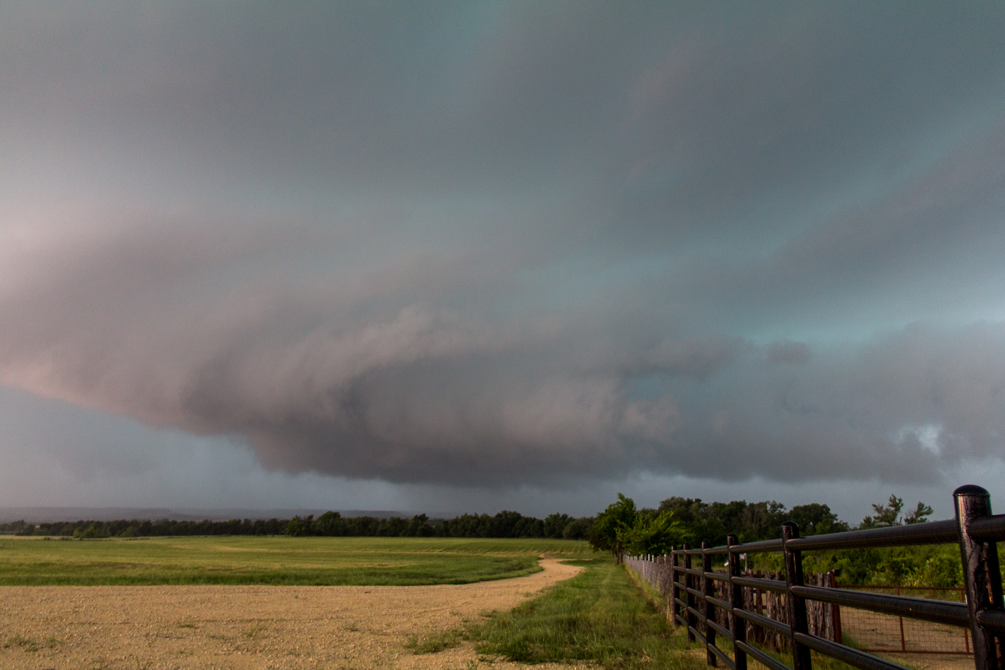 The next 2 hours was spent staying in the hook of the storm. The roads were less than ideal. The storm had some impressive wall cloud formations and wrap-ups, but no tornado.