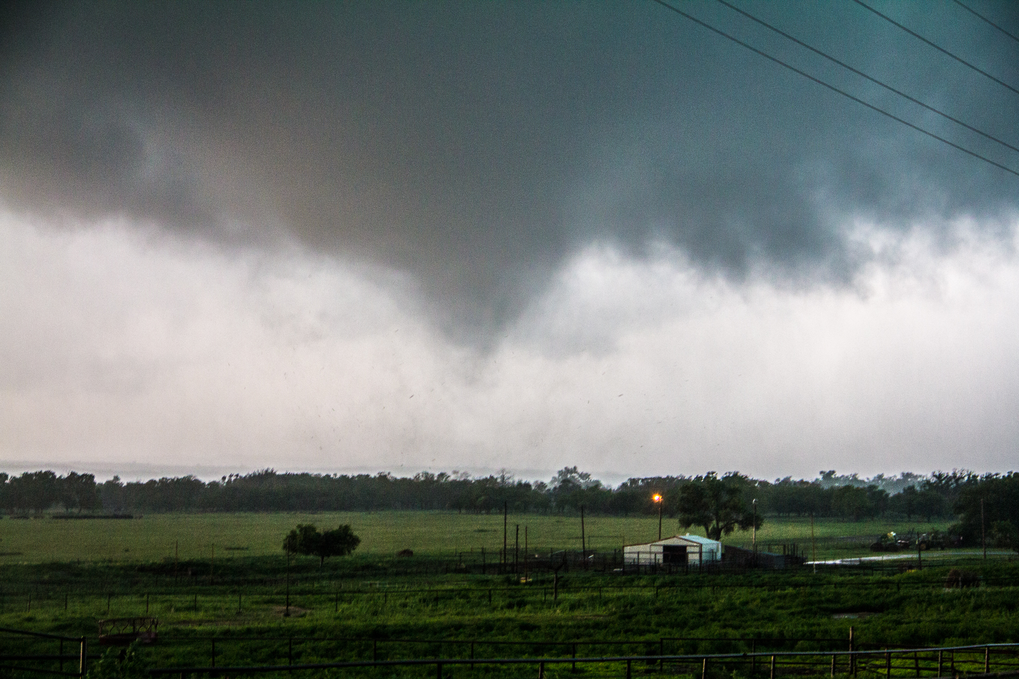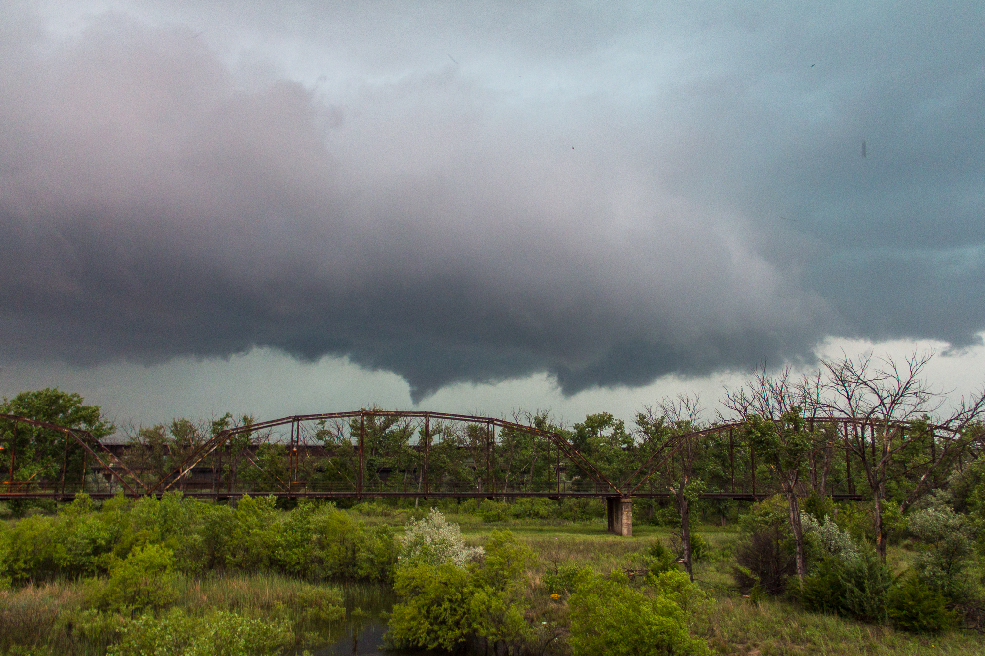 Things looked as if they would wrap up again to the south. I was busy editing and uploading video, so we repositioned to the south. The storm would go on to produce 2 more tornadoes right along 83 just west of Canadian.