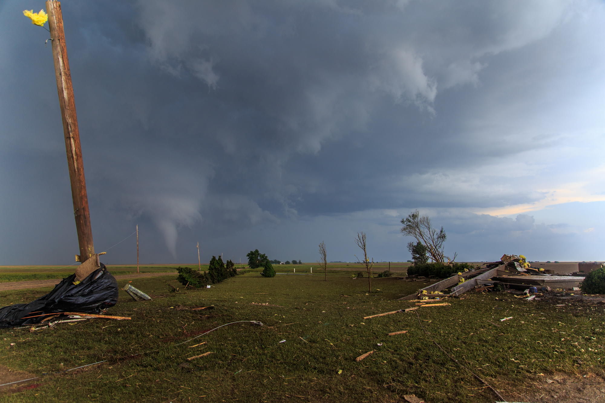 We continued north and saw 2 more tornadoes at once near the Landfill and came across a propane tank that had been thrown into the road, spewing gas. One of the most ‘Oh shit’ moments of any chase was driving by that and getting the heck out of there.