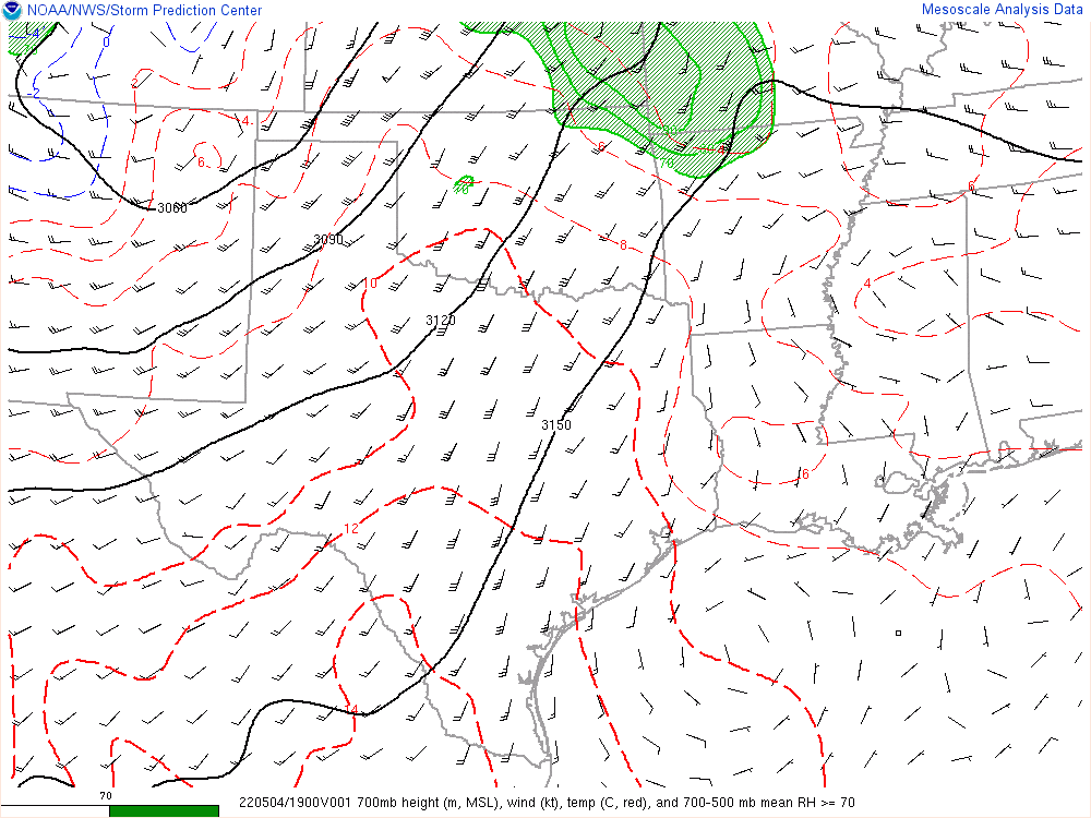 A complex forecast, but the setup screamed central Oklahoma to me. A warm front was moving its way northward out of north Texas. Oklahoma had a very moist and increasingly unstable airmass in place. Most places south of I-40 saw some sun.