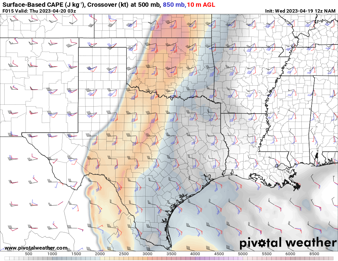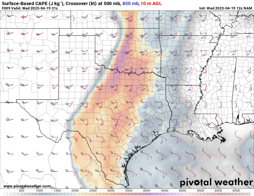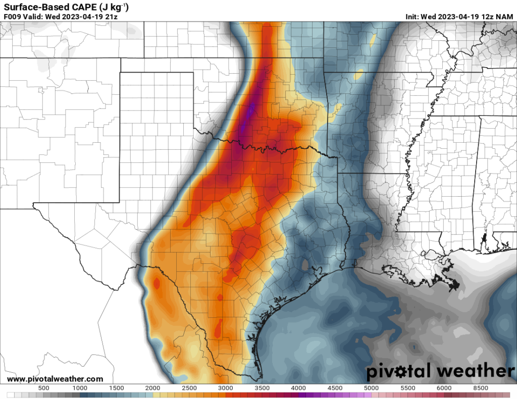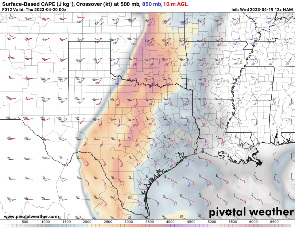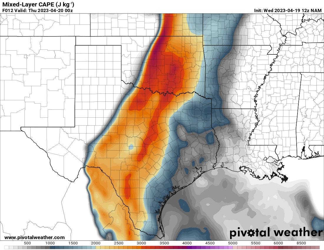 I woke up and took a look at the 12z NAM. A southwest/northeast oriented Dryline would be present with strong to extreme instability just east over the I-35 corridor in Central Oklahoma.