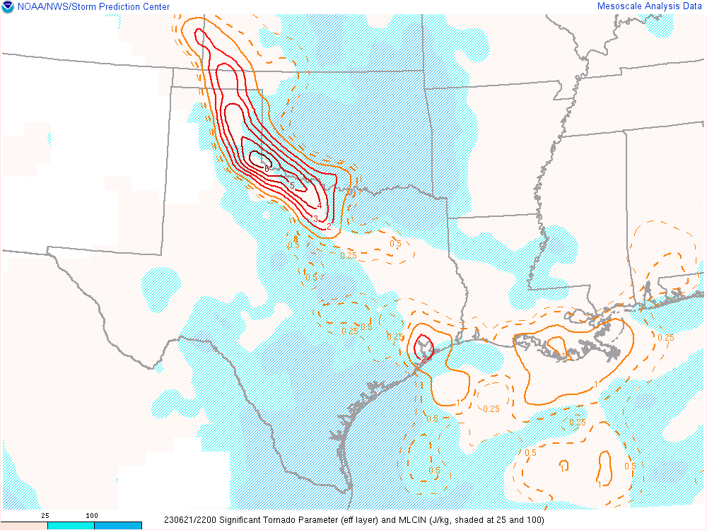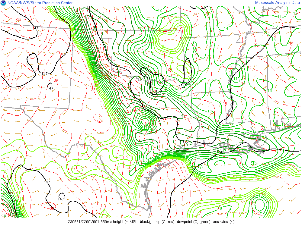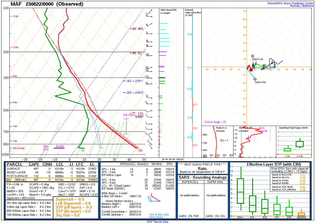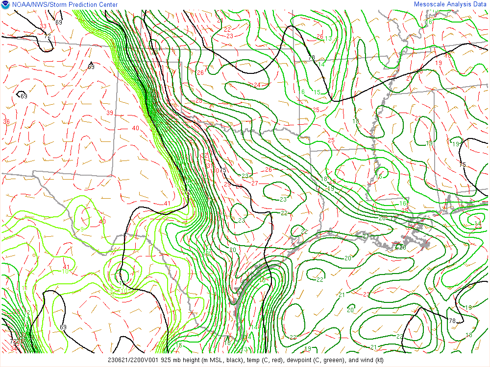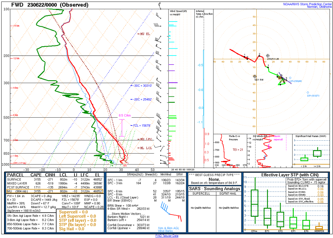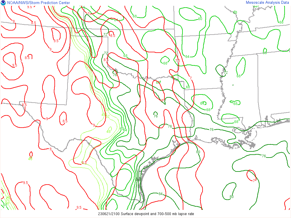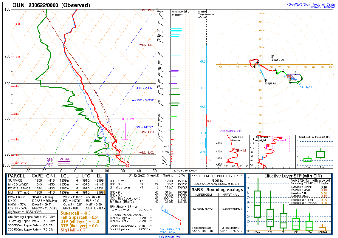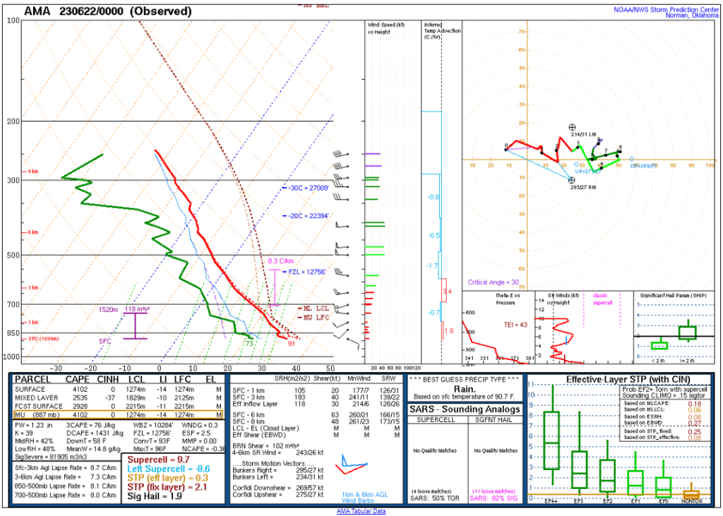 Here’s the 00Z soundings for June 22nd. As you can see, lapse rates were incredibly steep with deep moisture. A 73º degree dewpoint at Amarillo is pretty rare.
