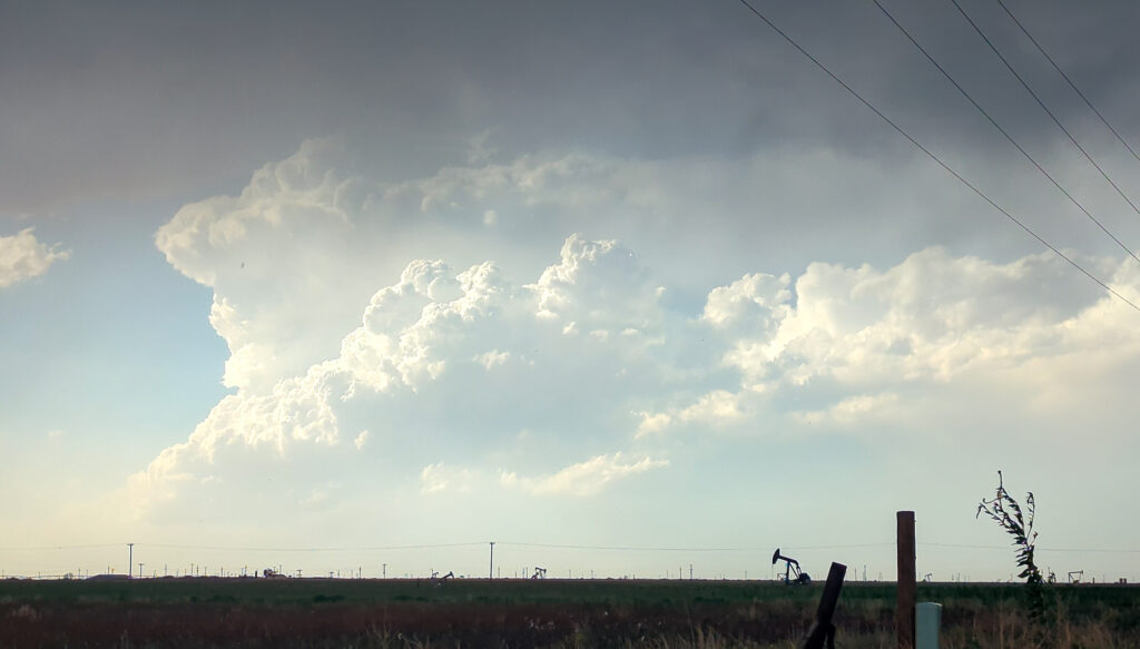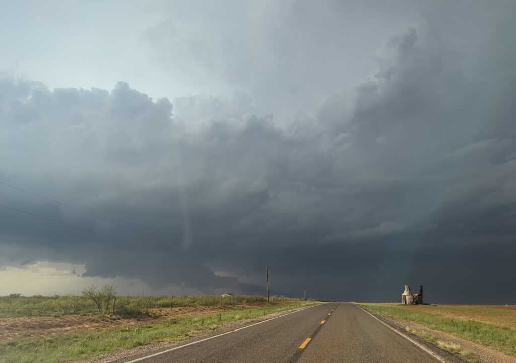 We headed east on FM211 from this intersection and headed over to US385 near Meadow. We’d make a short jog north and observe another tornado and very rapid motion in a wall cloud.