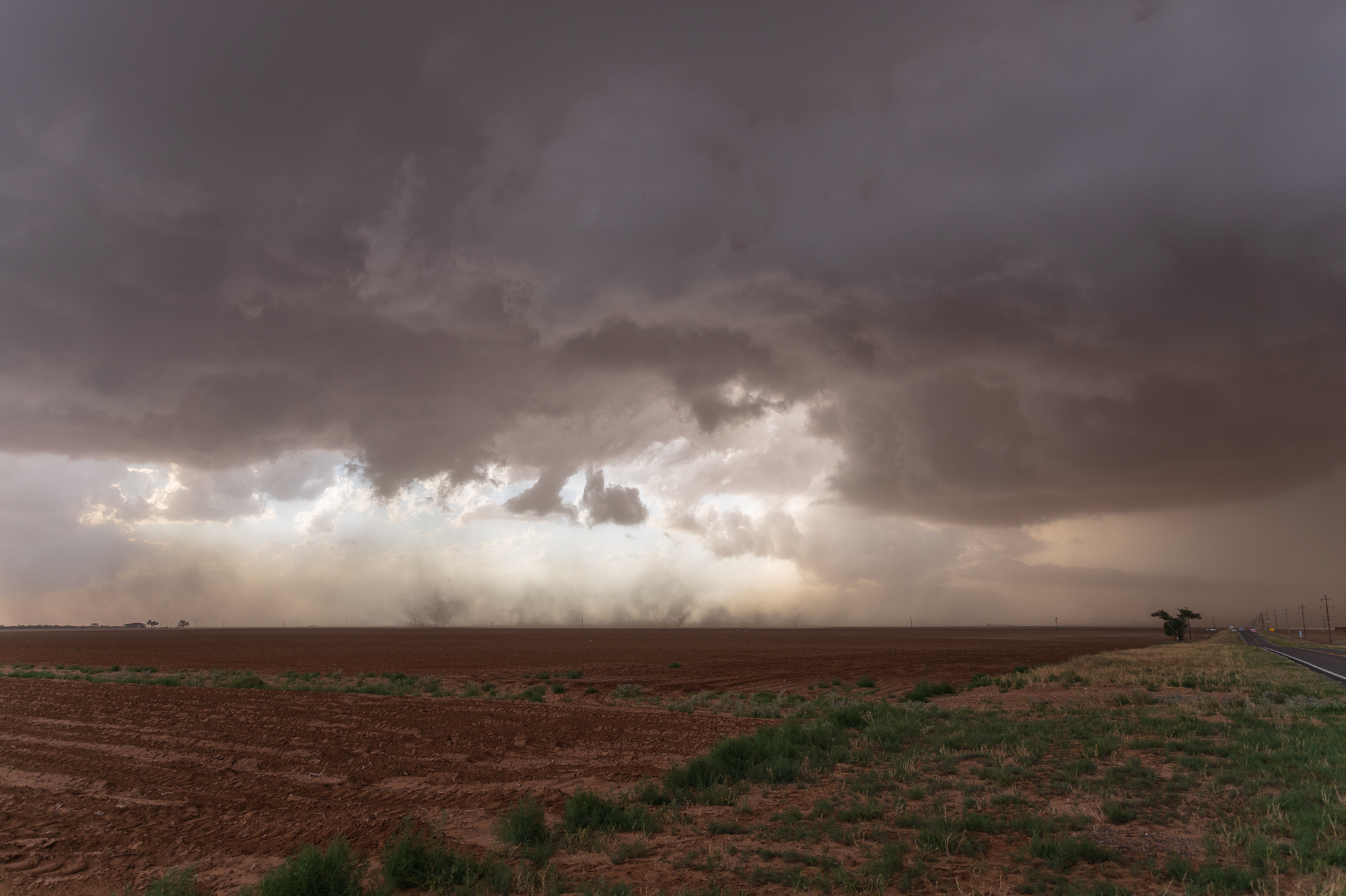 We stopped at the intersection with FM3261 and witnessed the Meadow Texas Tornado. A long conga line of chases was coming south on 385, so we continued back south after attempting to go up 3261. That was going to cut it way too close.