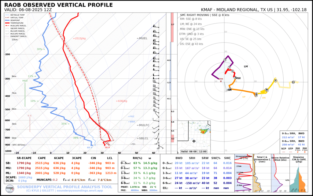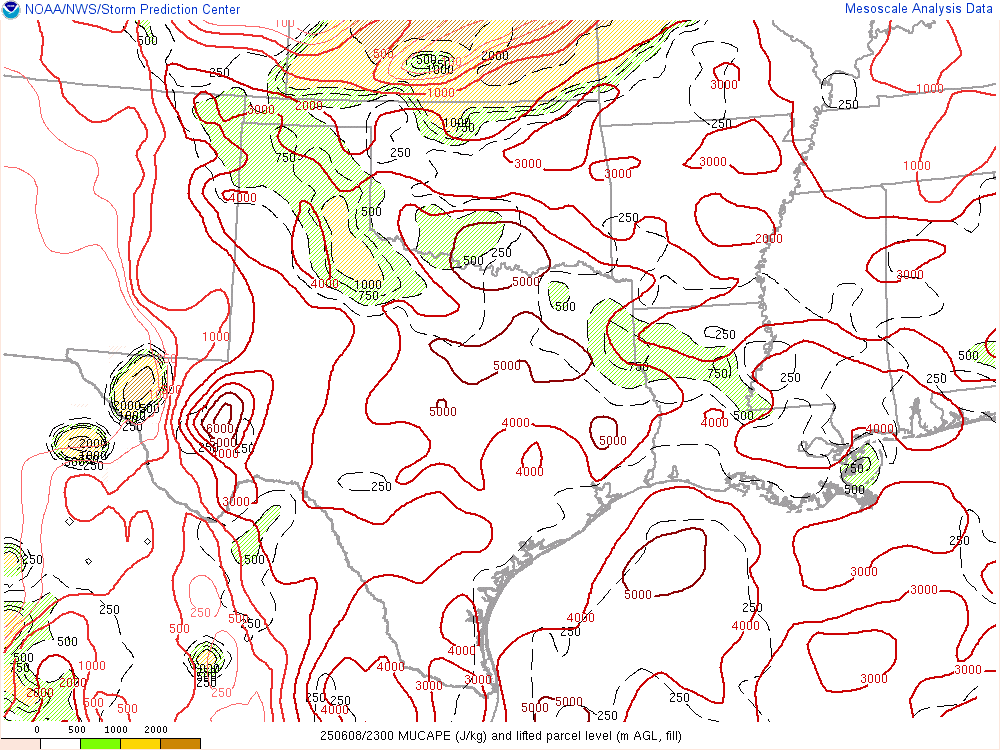 A very unstable atmosphere in place over the Texas panhandle with supercell shear. As it’s June, temperatures are a little high with RAP showing low 90 degree surface temps on the south side of the boundary with 70 degree dewpoints right up against the caprock.